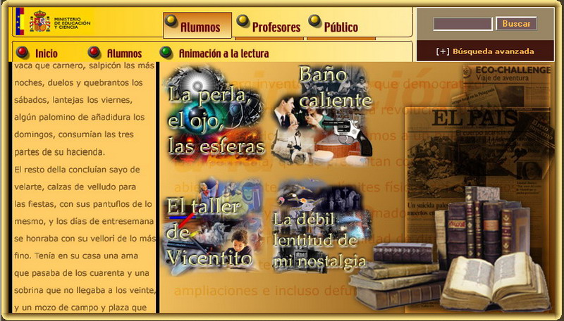 - "Webstinos" nos lleva a una serie de portales, bibliotecas virtuales, blogs y escuelas relacionadas con la literatura.